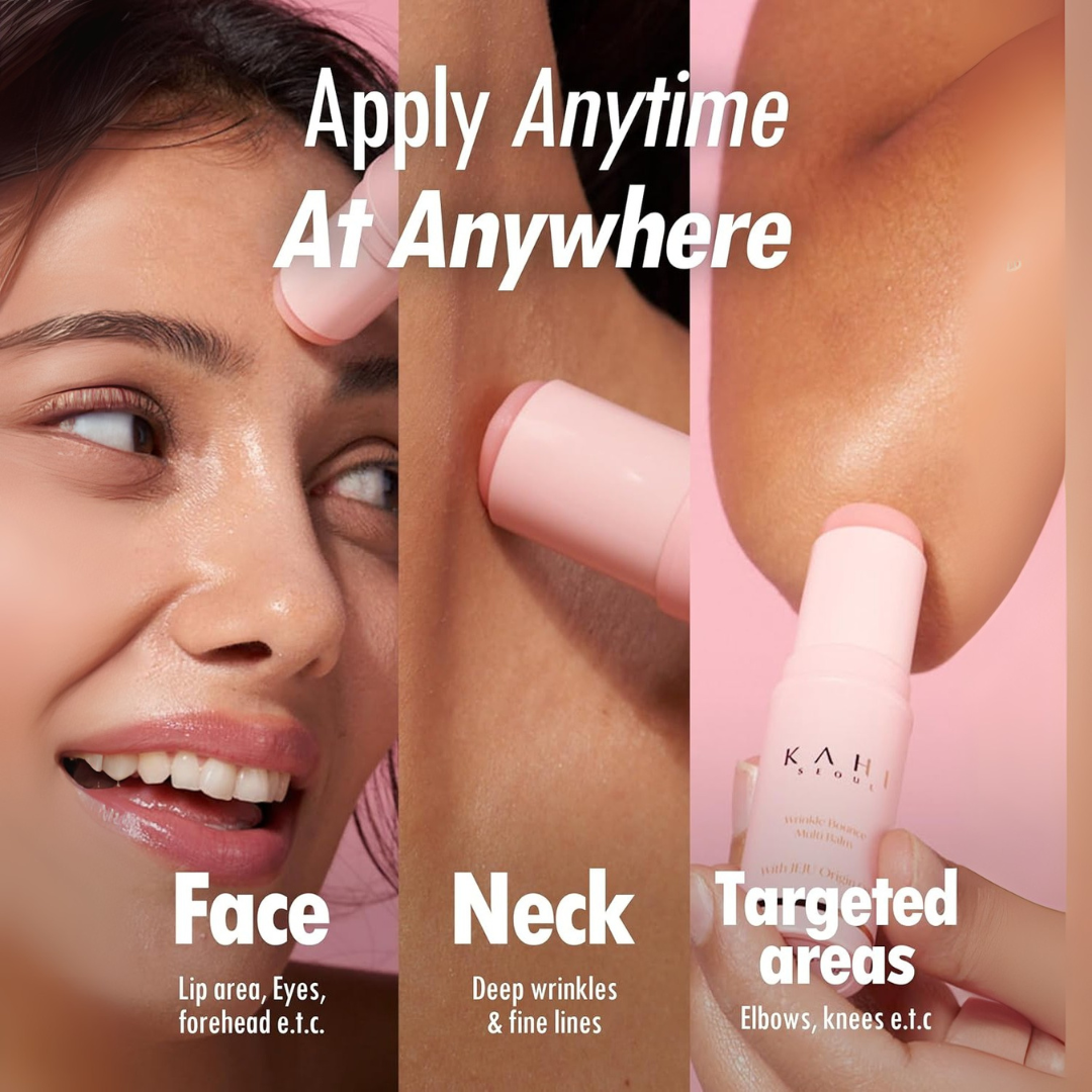 The KAHI Wrinkle Bounce Multi Balm uses Salmon Collagen and PDRN to help smooth fine lines and improve skin elasticity
